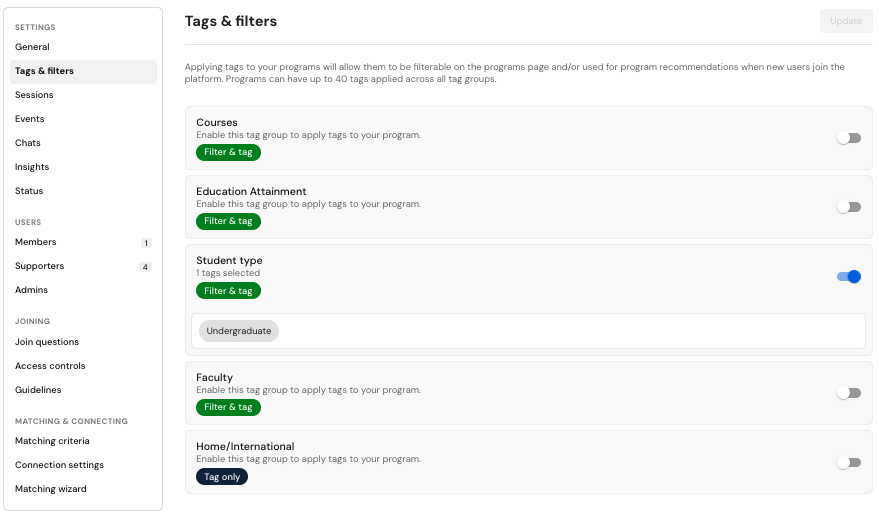 Step 3: Select Tags: Choose the applicable tags for each program from the enabled tag groups and save the changes.